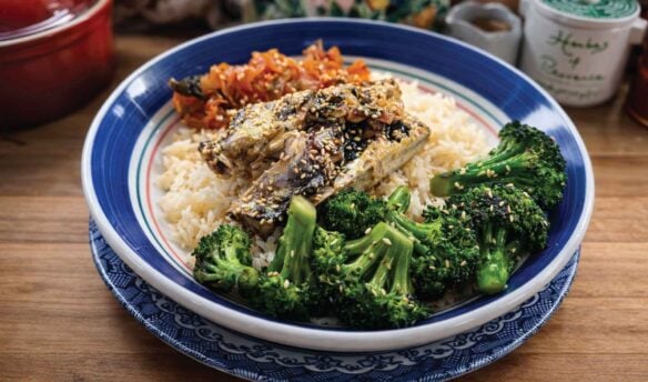 How to Make a Simple Sardine Rice Bowl with Charred Broccoli and Kimchi