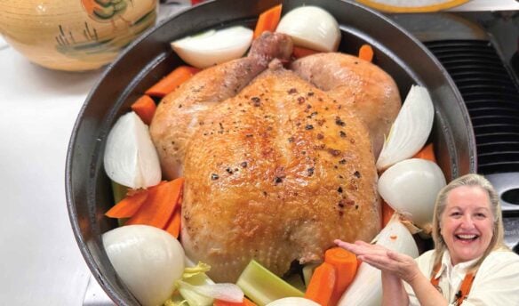 As I share in my recipe video, I could roast a chicken every day! And this Easy Roast Chicken Recipe is one of my favorite ways to roast a chicken. The chicken is so flavorful, thanks to the compound butter rubbed under the skin!