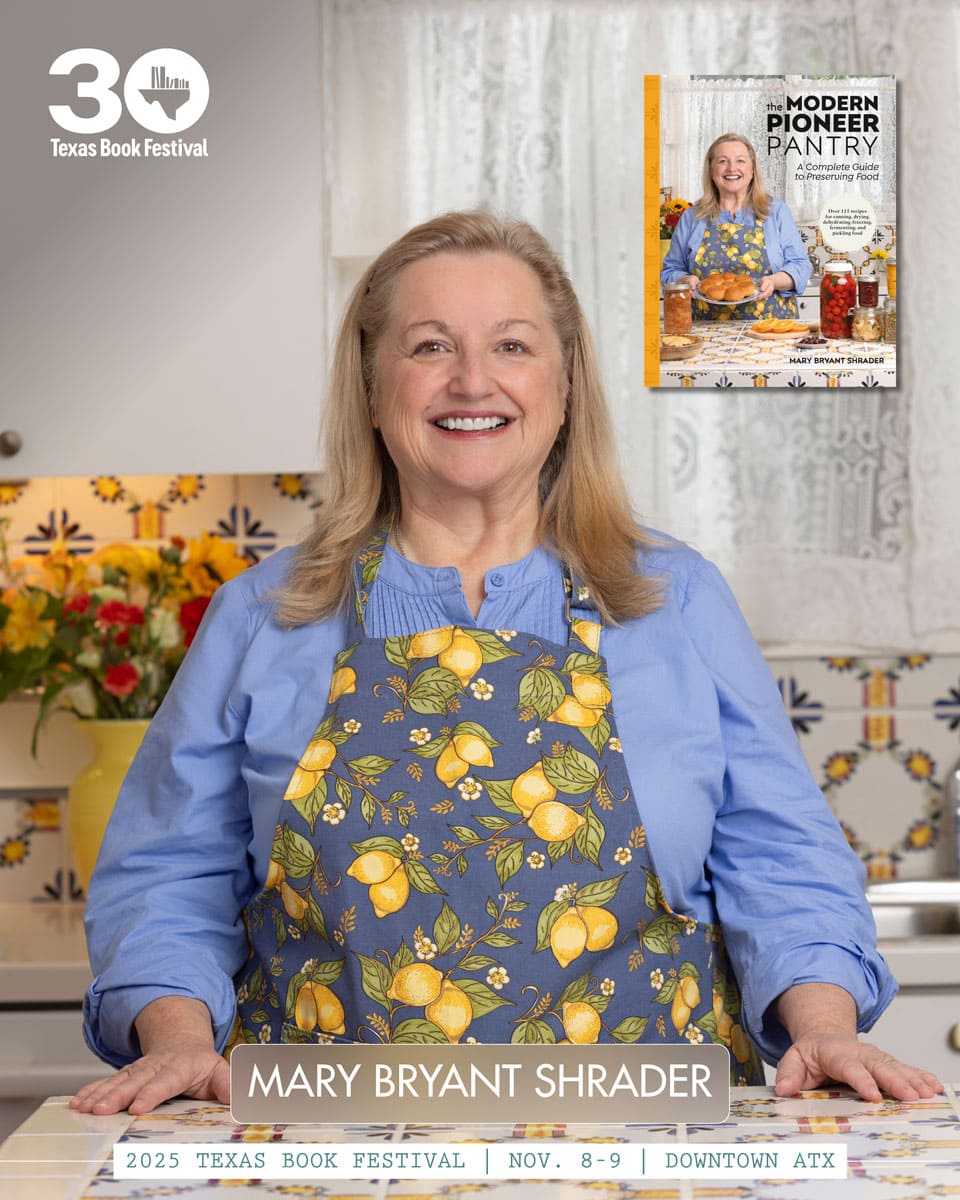 Mary Bryant Shrader is the bestselling author of The Modern Pioneer Cookbook and The Modern Pioneer Pantry. She’s a self-described “former New York City girl” who discovered the simple life with her husband in the Texas hill country. She’s a modern pioneer in the kitchen who has spent the last twenty-five years teaching friends and fans alike how to make nourishing recipes using traditional methods and whole, seasonal ingredients. Her mission is to teach her followers how to make nutrient-rich meals using traditional “pioneer” techniques like fermenting, canning, and drying.