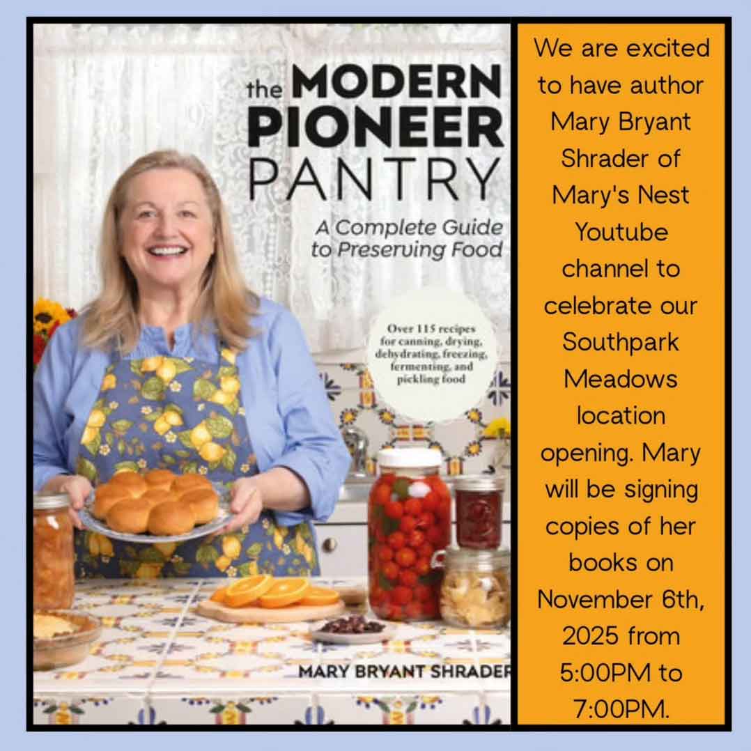 Stop by and visit with me, and be sure to pick up a few signed copies of The Modern Pioneer Pantry for your family and friends. They make wonderful birthday and Christmas presents for your favorite homecook!